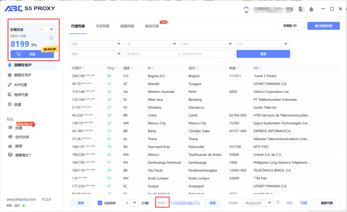 支持国家、城市、邮编和ISP过滤、API自动提取等