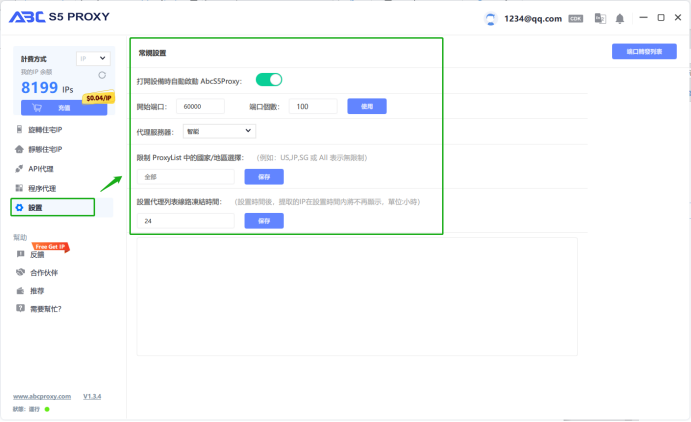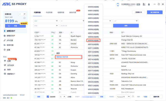 1、设置你需要的端口数量,配置所需的端口数量和国家搜索范围。