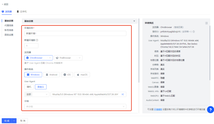 新建环境:【新建环境】,出现如下图详细信息页面,填写【基础设置】板块的信息。