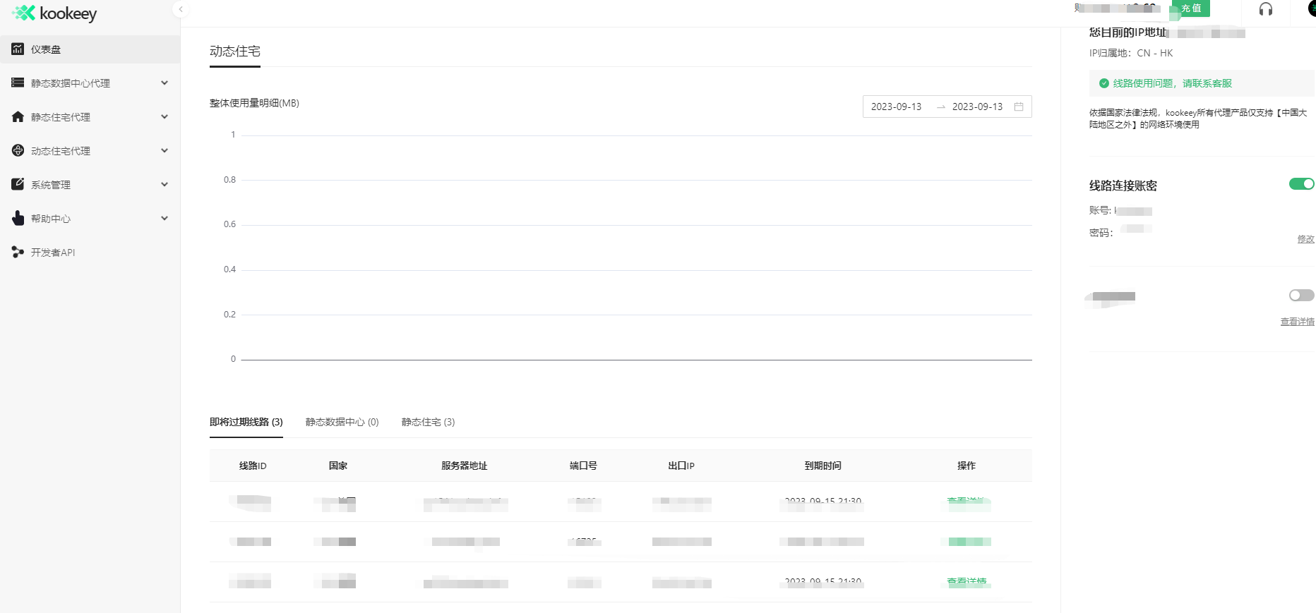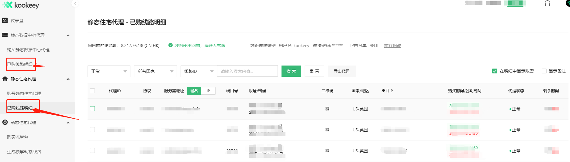 3.1.购买静态数据中心代理和静态住宅代理在已购买的线路明细查看