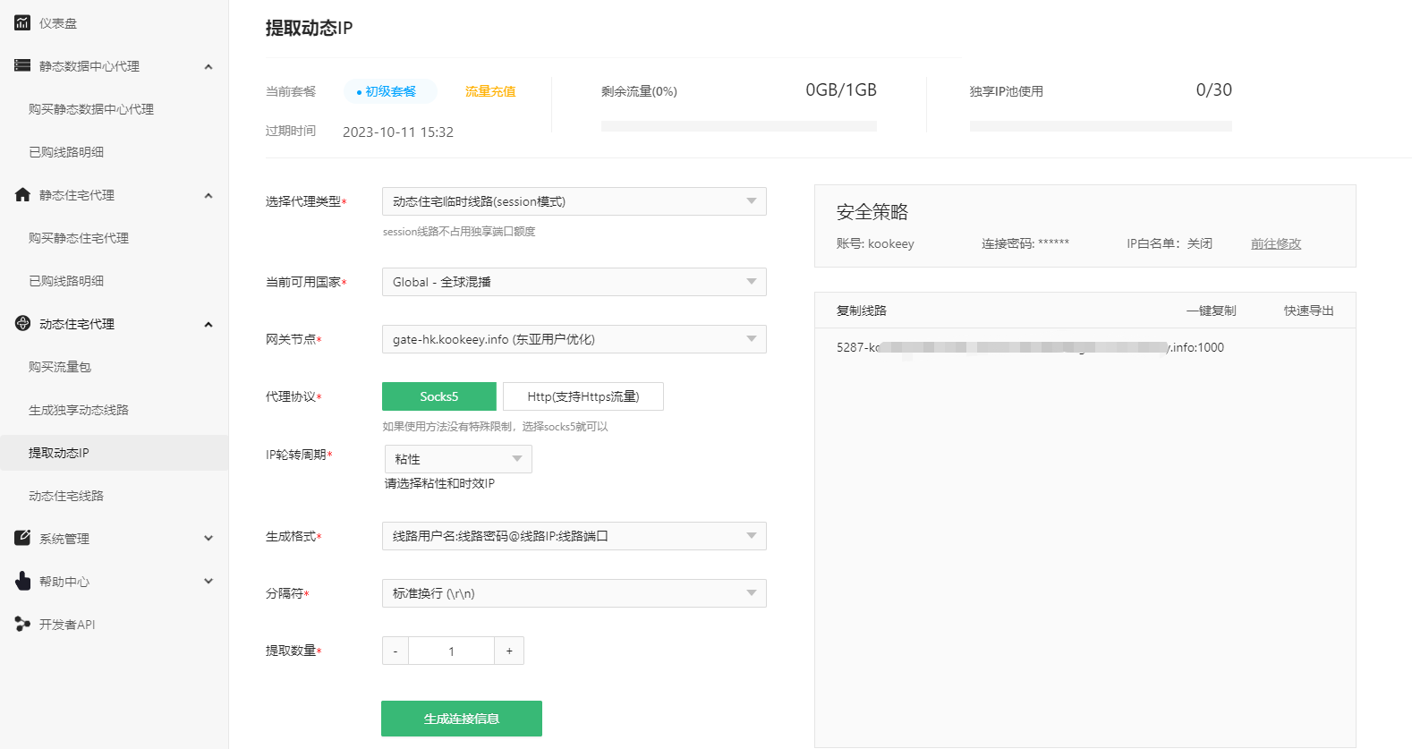 3.2.动态住宅代理,支持生成独享的动态线路,提取动态IP,以及动态住宅线路