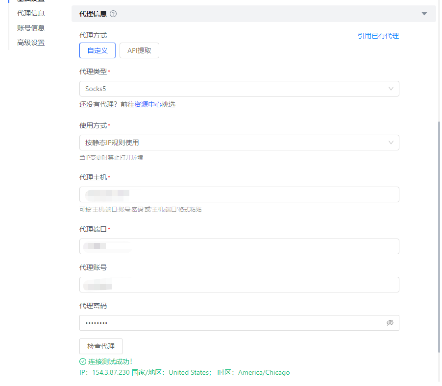 5.2.填写之后点击「检测代理」,检测代理是否可以正常使用(如果检测不通过,请检查本地是否为境外环境)