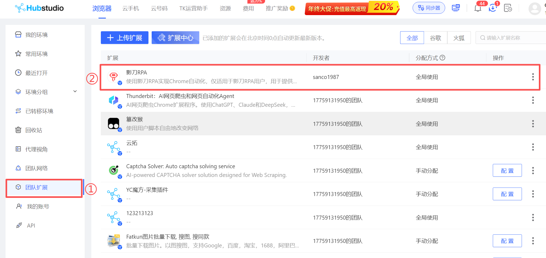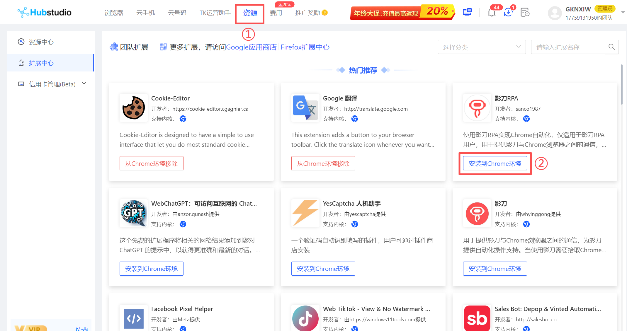 2.在Hubstudio安装影刀RPA扩展